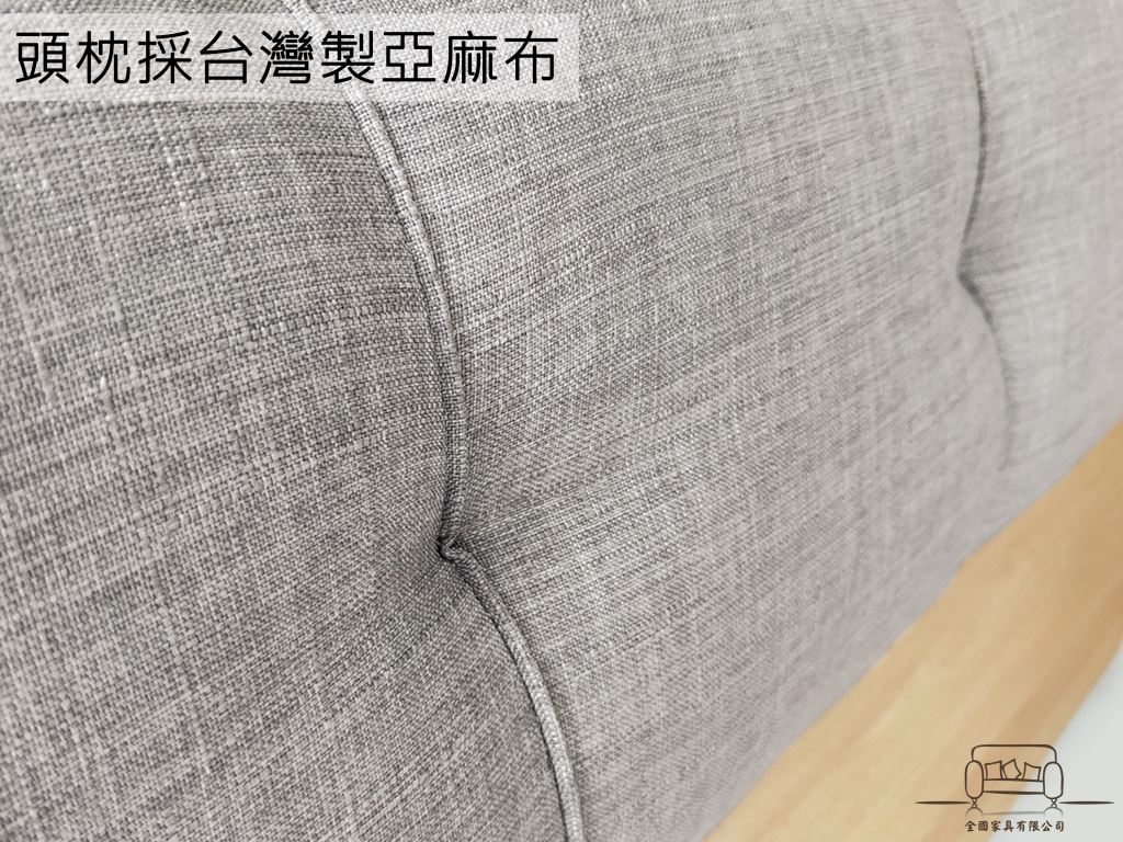 床頭枕:採台製防潑水亞麻布+高密度泡棉,經手工精製車縫